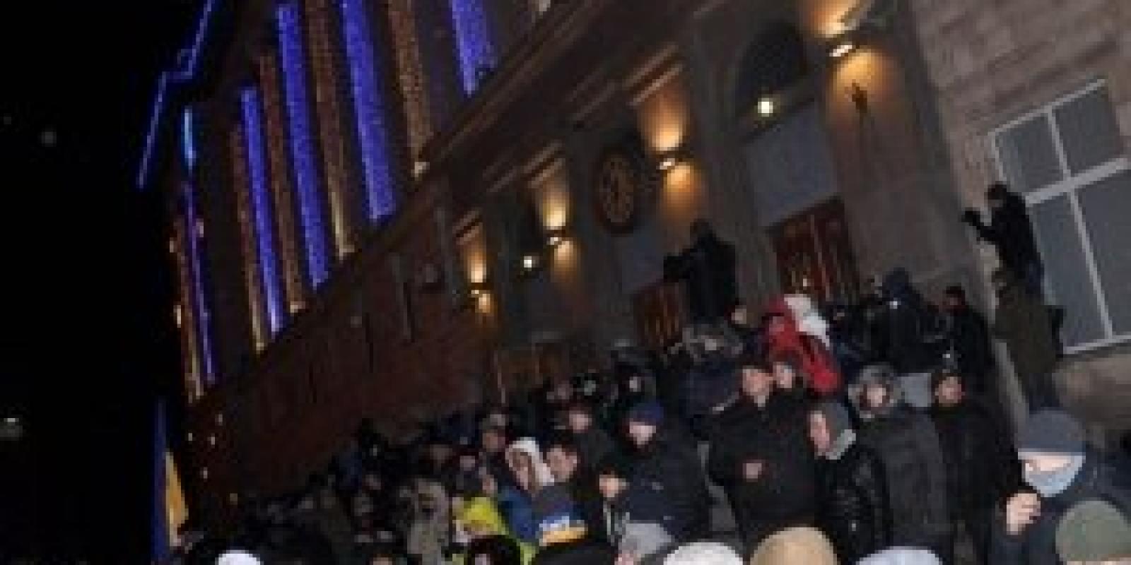 Черкаські мітингувальники таки увірвалися до будівлі ОДА.