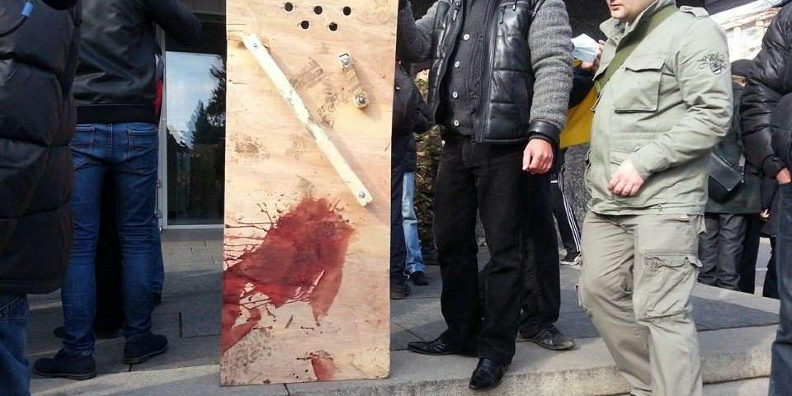 Черкаські активісти зібрали гільзи від патронів, якими вчора стріляв “Беркут” у організаторів блок-посту, і принесли до міськради щит із плямами крові. Пакет із гільзами священик-чорнобилець Борис Бродовський вручив в.о. міського голови Віктору Білоусову. Депутати від опозиції вимагали реакції прокурора міста Олександра Маслюка на вчорашні події на дамбі.