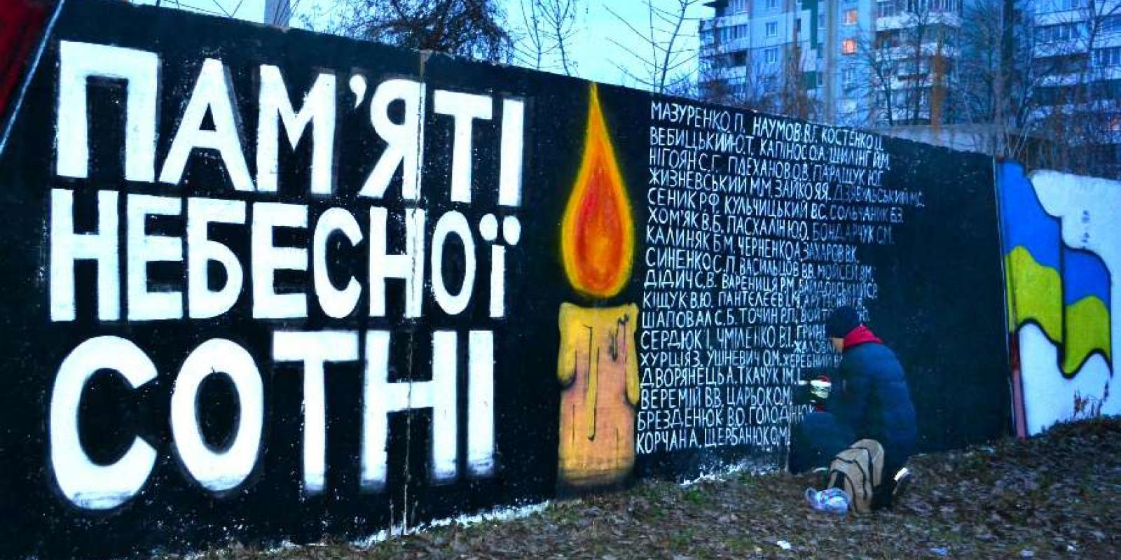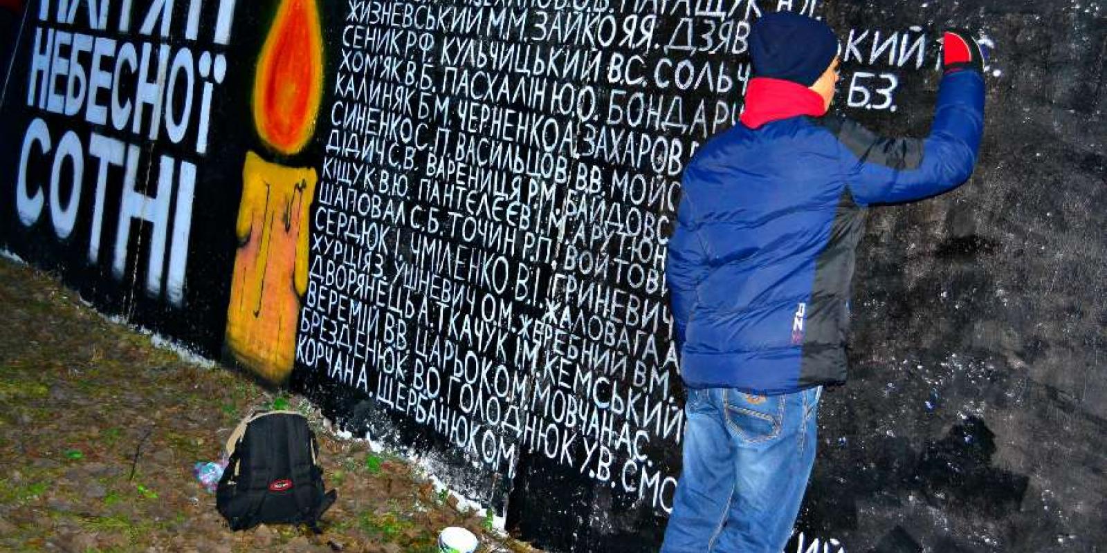 25 лютого на паркані по бульвару Шевченка (біля перехрестя із вулицею Пушкіна) почав з’являтися цілий меморіал пам’яті Небесної Сотні. Сьогодні вуличний художник вписував імена загиблих.