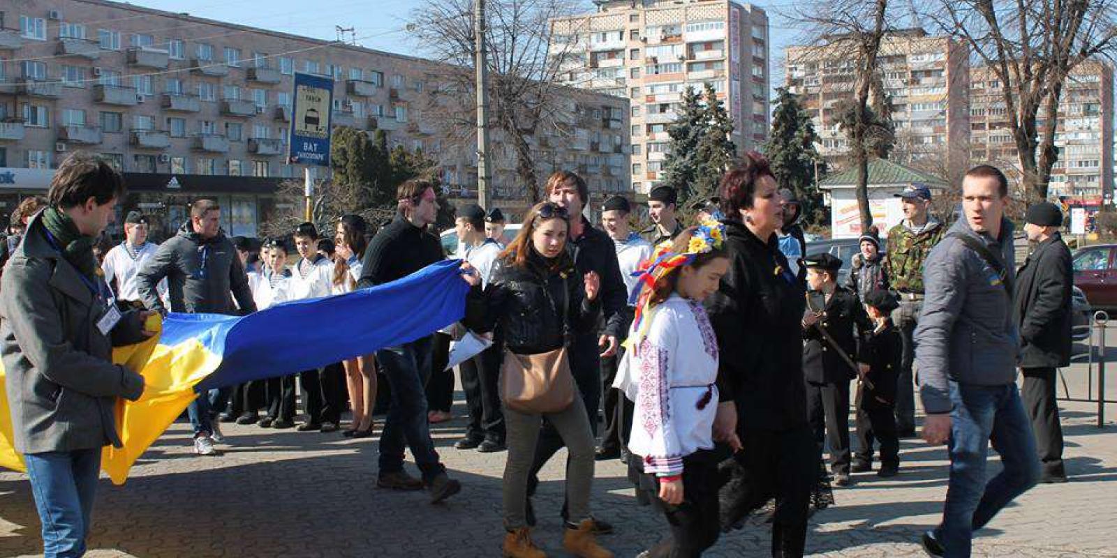 Акція стартувала біля клубу Юних Моряків і переросла у ходу бульваром Шевченка до центру міста. Активісти несли в руках банери, постери, плакати з віршами Шевченка, антивоєнними гаслами, патріотичними рядками, закликами зняти рожеві окуляри та зрозуміти масштаби путінської інтервенції і прихованої агресії проти Української держави.