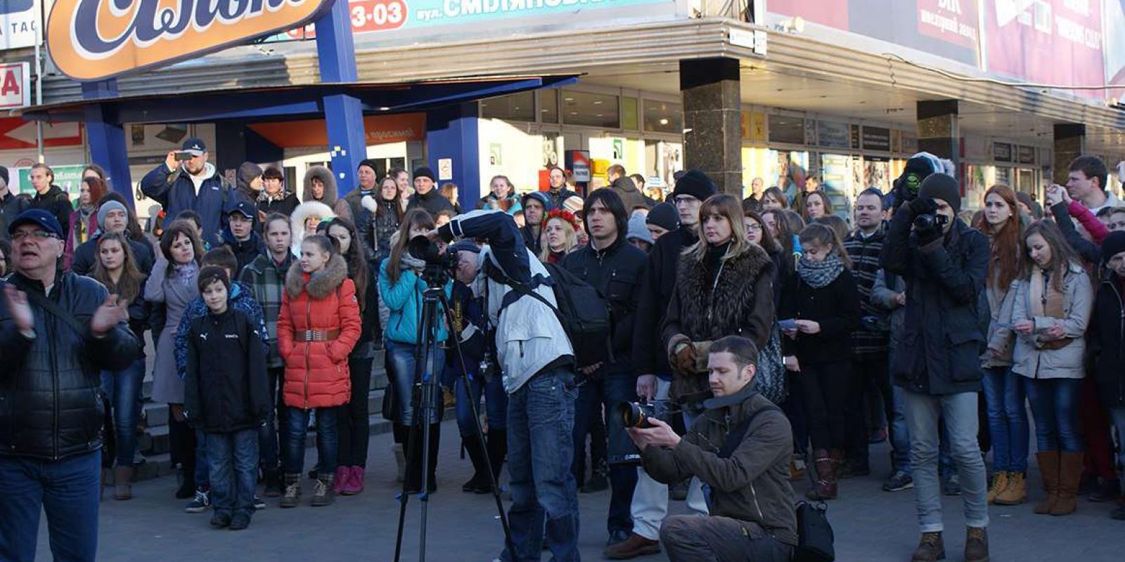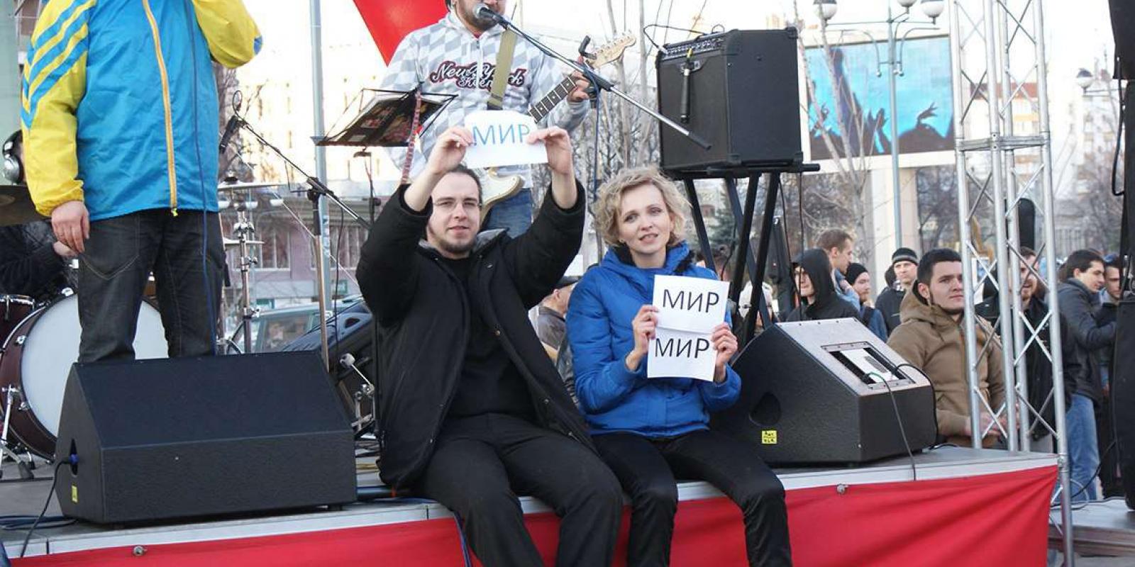 Рок-музиканти та інші небайдужі люди нашого міста зібралися на одній сцені, щоб записати відео-звернення до рок-музикантів братерньої Росії, до посольства та мешканців сусідньої країни, щоб ще раз нагадати про недопустимість війни між слов’янськими народами. Звернення лунало російською мовою на знак того, що поширена на нашій землі російська не є об’єктом ненависті та переслідувань, а навпаки – поєднує творчі та музичні кола, інтелігенцію, дає можливість спілкуватися та бути почутими як в Україні, так і в Росії. Спільне звернення завершилося виконанням пісні «Не спеши» російського гурту «Чайф», до якого долучилися і глядачі, на останніх словах, піднявши вгору аркуші паперу зі словом «МИР».