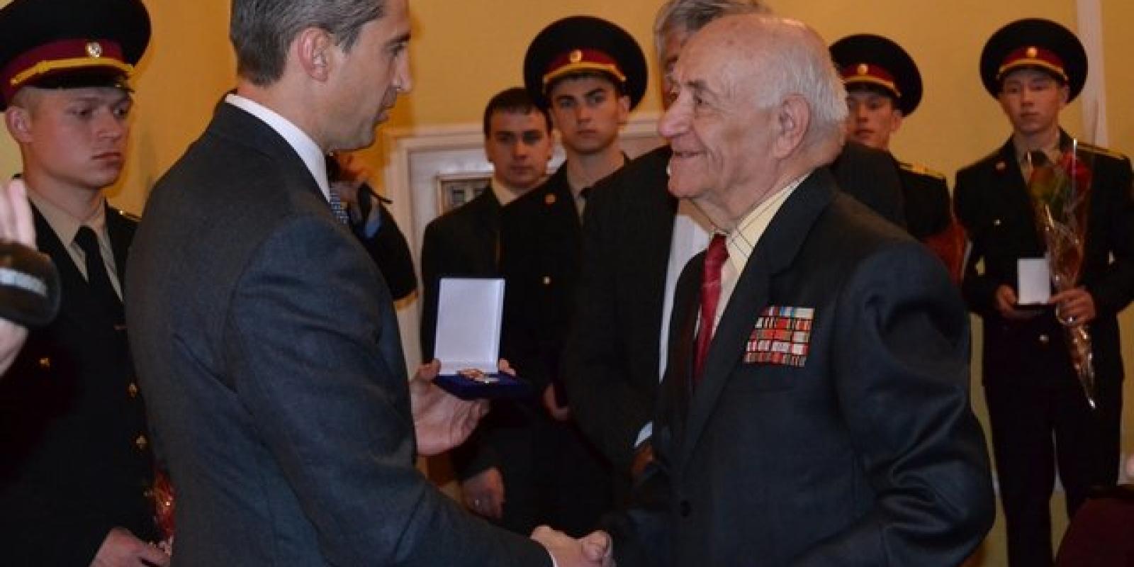 Після цього Юрій Олегович вручив відзнаки «70-річчя визволення Черкаської області» присутнім у залі ветеранам Великої Вітчизняної війни: Петру Красовському, Леонідові Кулику, Аркадієві Маренкову, Генрієтті Остапчук. Всі вони, зрозуміло, нині – вже люди дуже похилого віку, яким навіть піднятися й піднятися на сцену було важко. Ткаченко підійшов до них сам.
