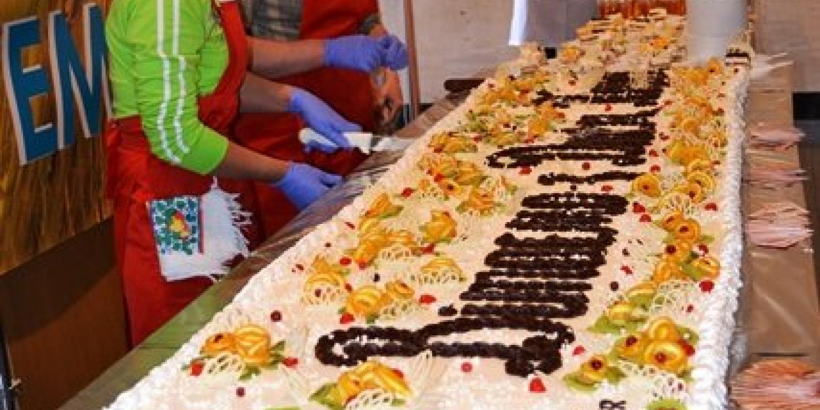 Ветеранів та гостей свята, які виходили з глядацької зали, пригостили тортом. Як повідомили кореспондентові «Прочерку» організатори, цей торт був завдовжки 3,5 м і важив 50 кг.