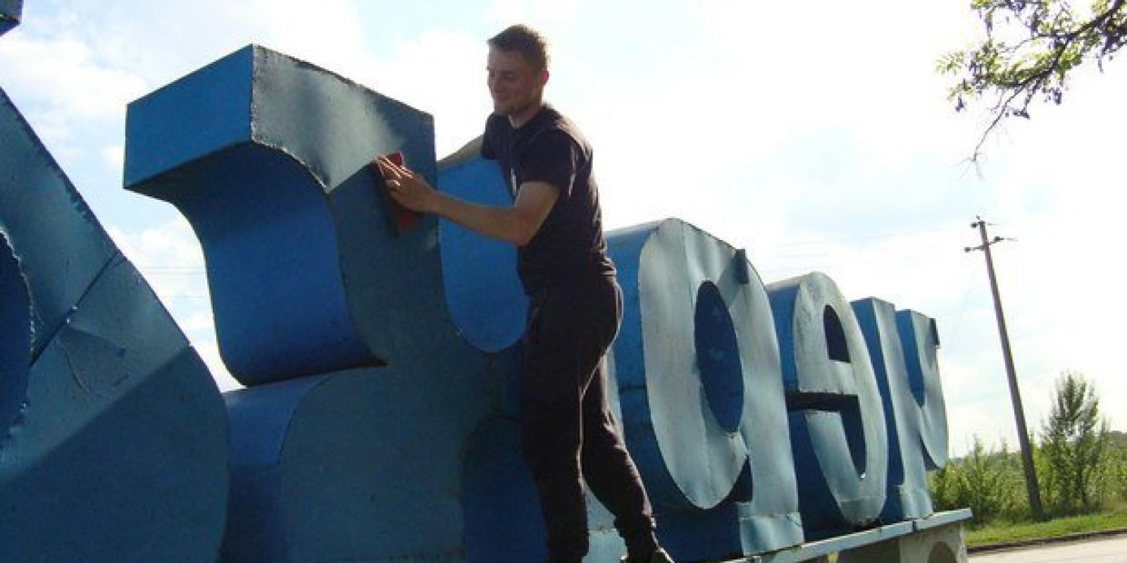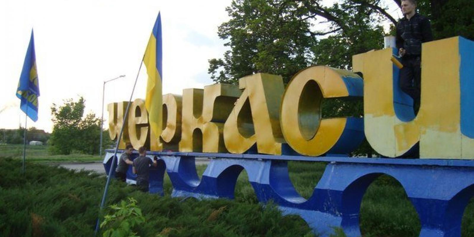 Вчора молоді активісти пофарбували в’їзний знак "Черкаси" у напрямку Чигирина в жовто-сині кольори.
