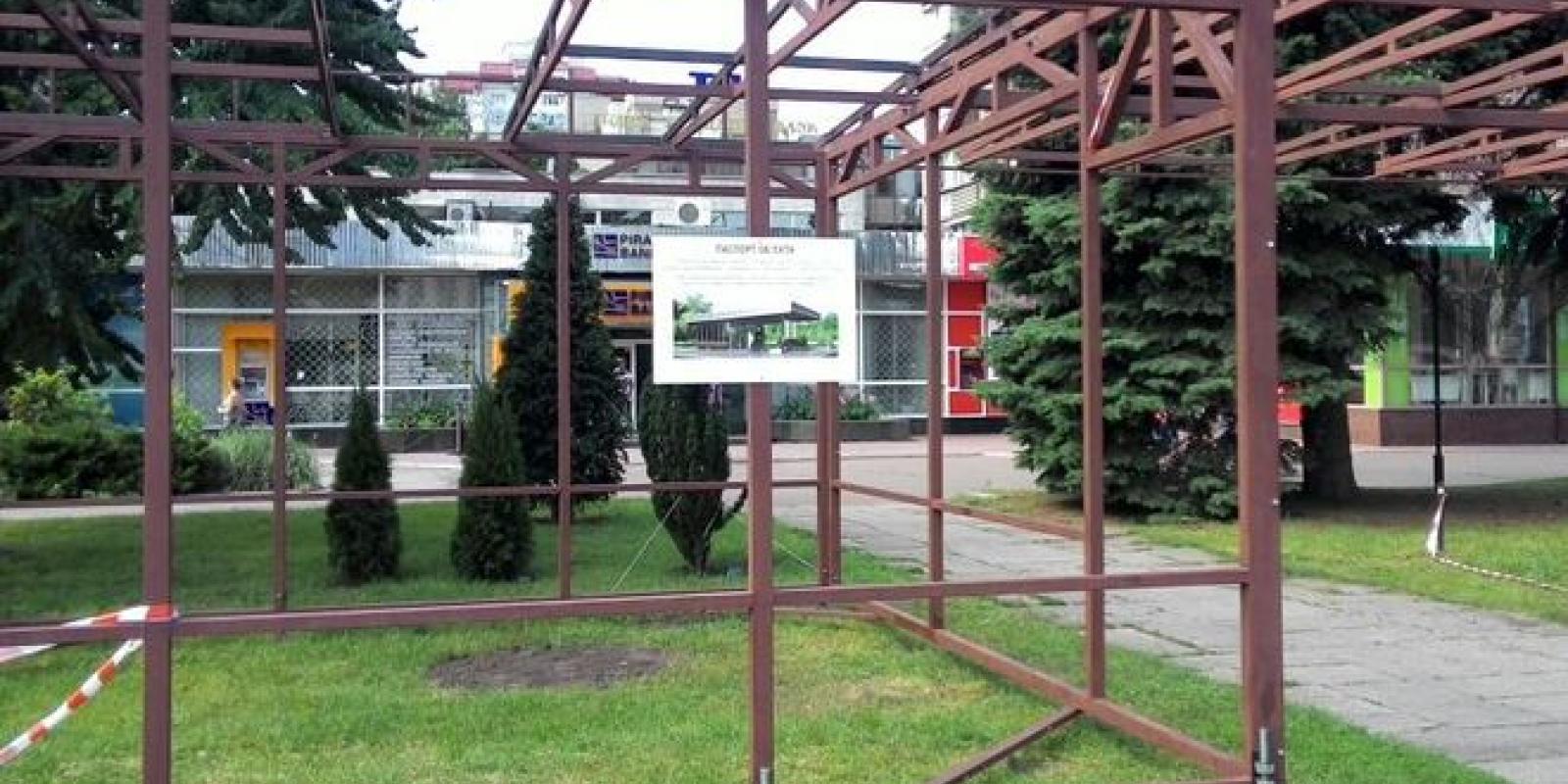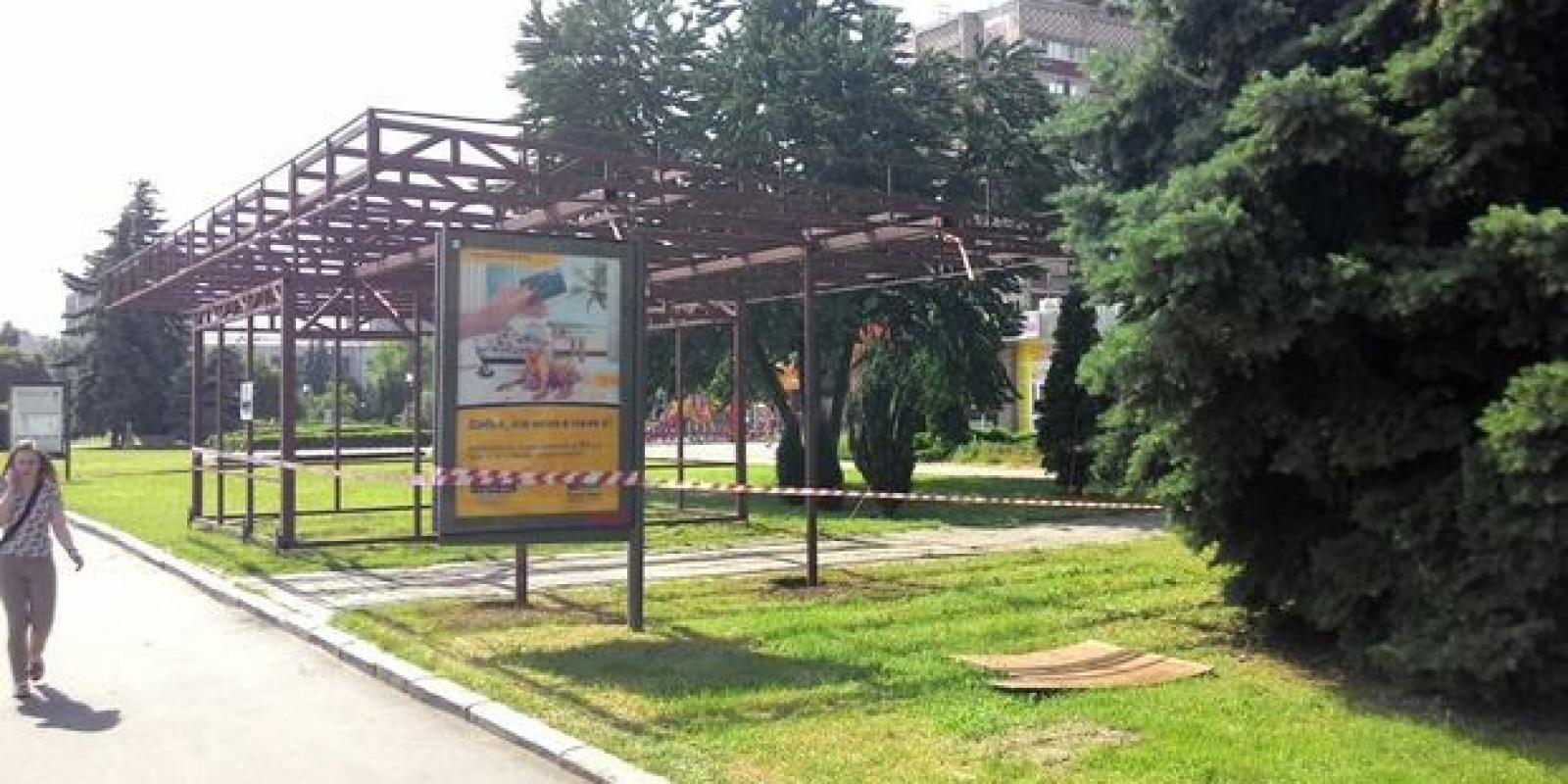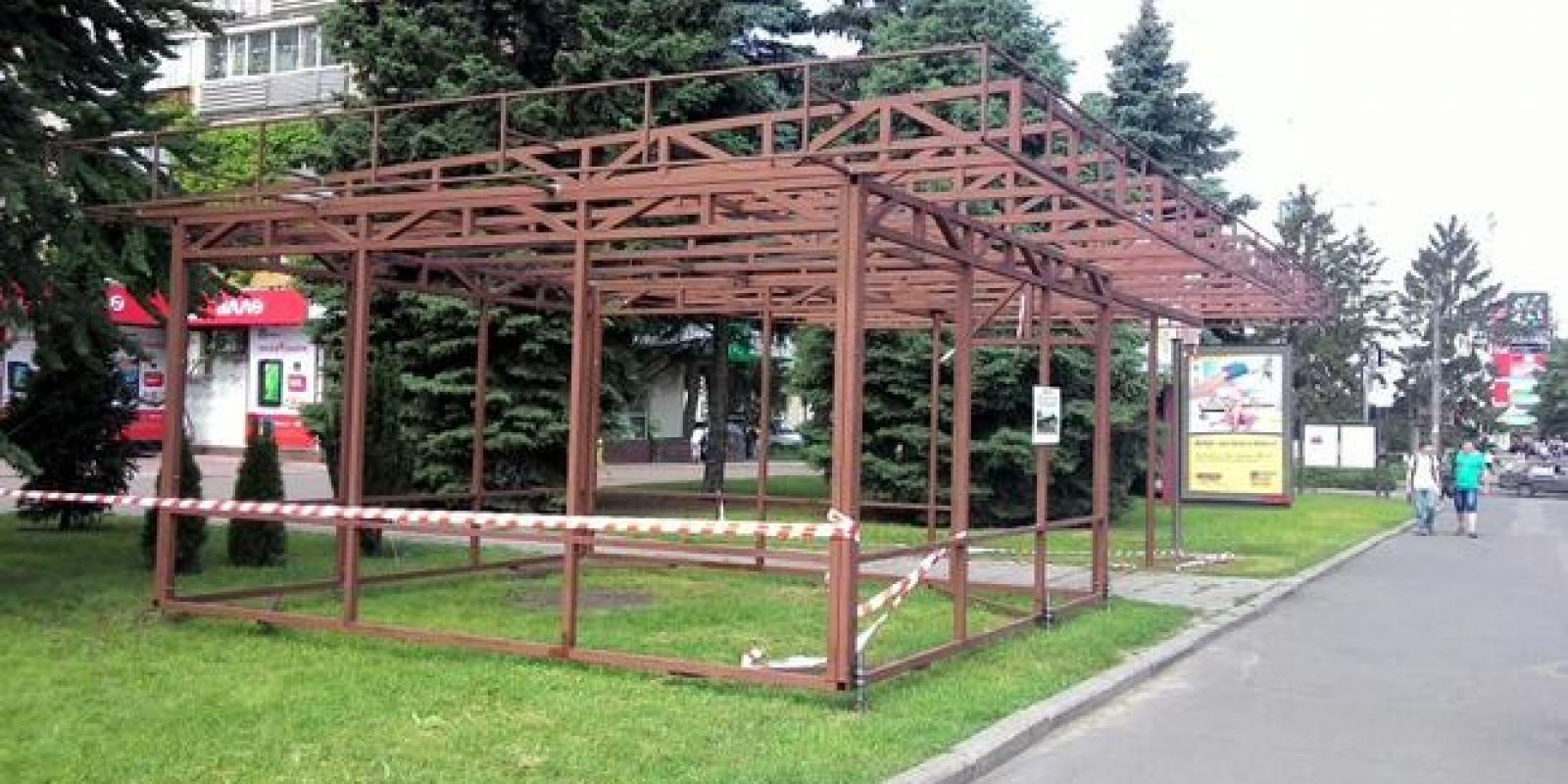У Черкасах посеред газону почали встановлювати малу архітектурну форму. Зупинку переносять із "Драмтеатру" і "Трикотажної фабрики". Нова зупинка розташована навпроти Соборної площі
