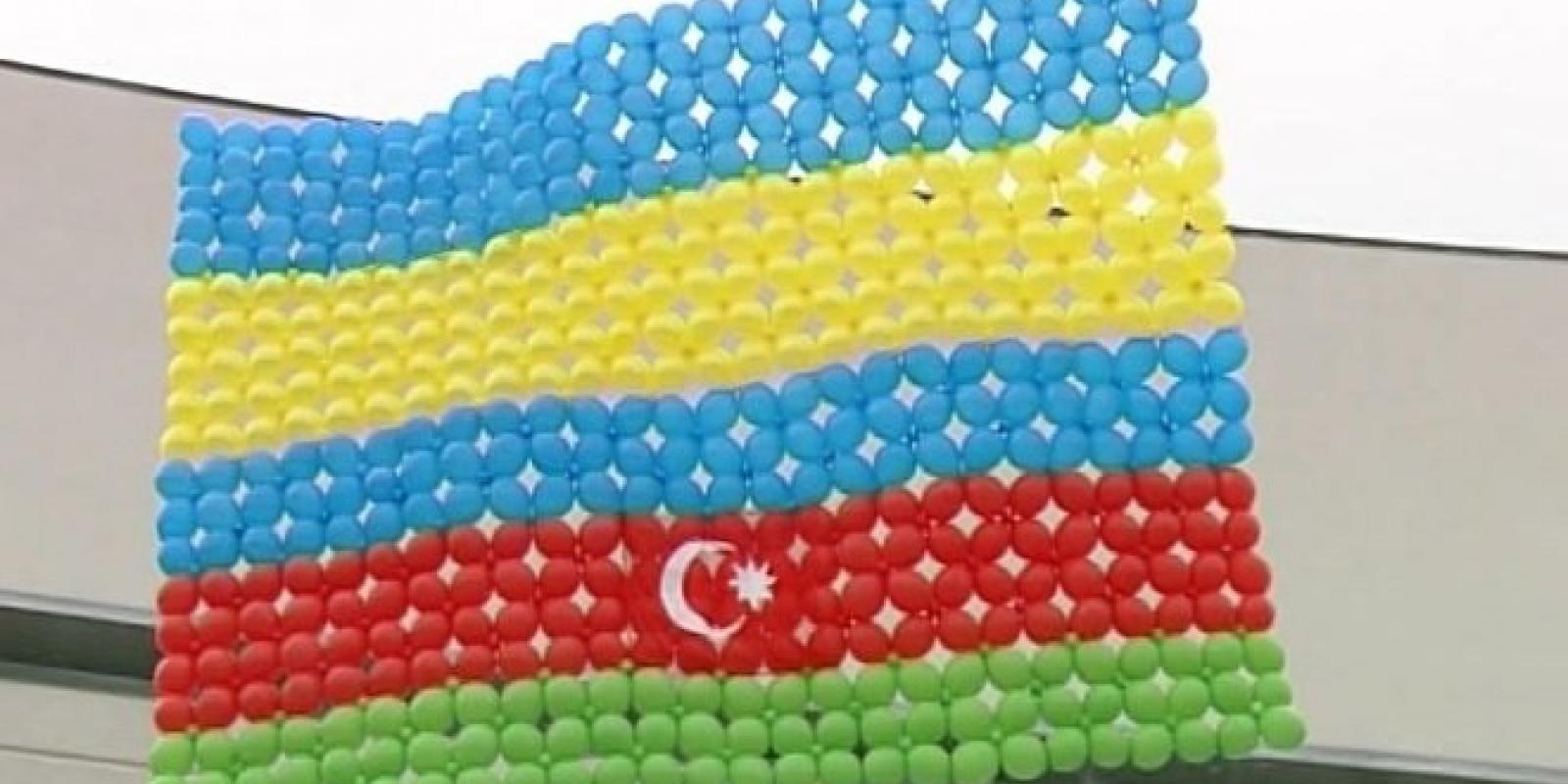На площі ім. Богдана Хмельницького вони запустили 900 повітряних кульок, склавши з них прапори України та Азербайджану.