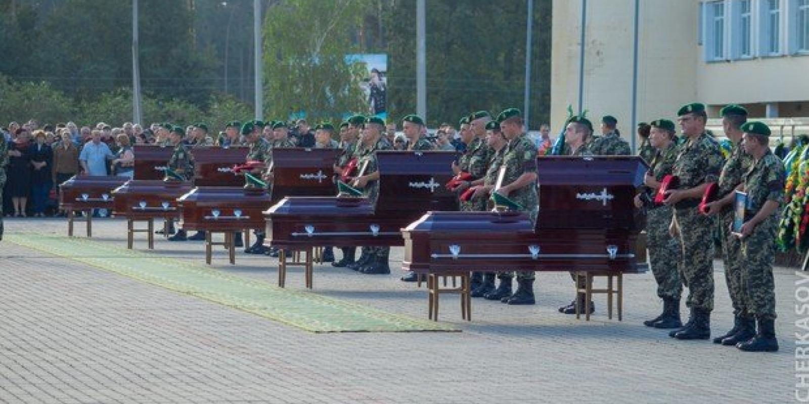 Сьогодні вранці на плацу Навчального центру Державної прикордонної служби в Оршанці під Черкасами попрощалися з загиблими під час обстрілу терористів 14 червня в Маріуполі прикордонниками.