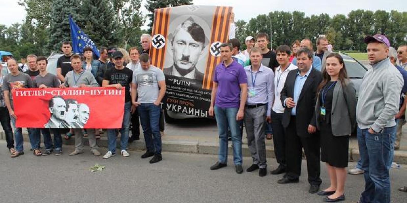 Акція "Стоп фашизму в Росії" відбулася в Черкасах 22 червня, у день чергової річниці Другої світової війни. Представники всеукраїнського об'єднання "Автомайдан" з'їхалися до нашого міста для того, щоб нагадати: сучасна російська агресія надто схожа на гітлерівську. Так, із плакатами "Гітлер-Сталін-Путін", "Стоп фашизм в Росії" активісти нагадали про те, що проти України зараз ведуть жорстоку інформаційну війну.