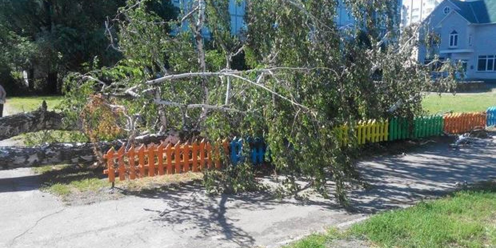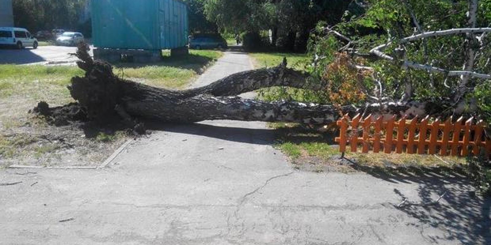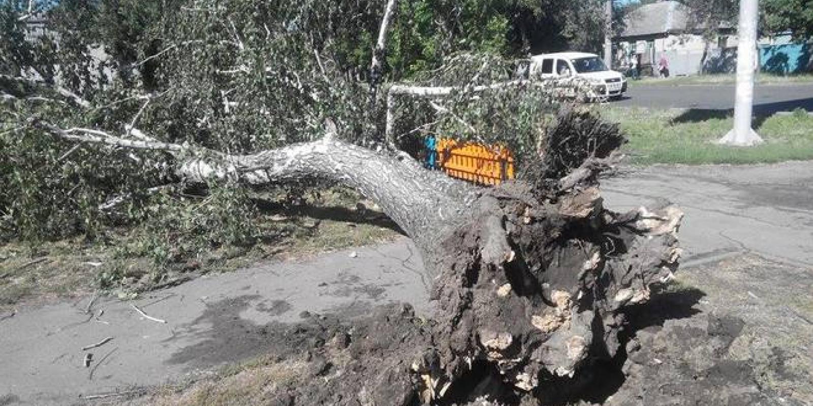 У Черкасах на перехресті вулиць Гоголя – Енгельса вчорашня негода вирвала дерево з корінням.