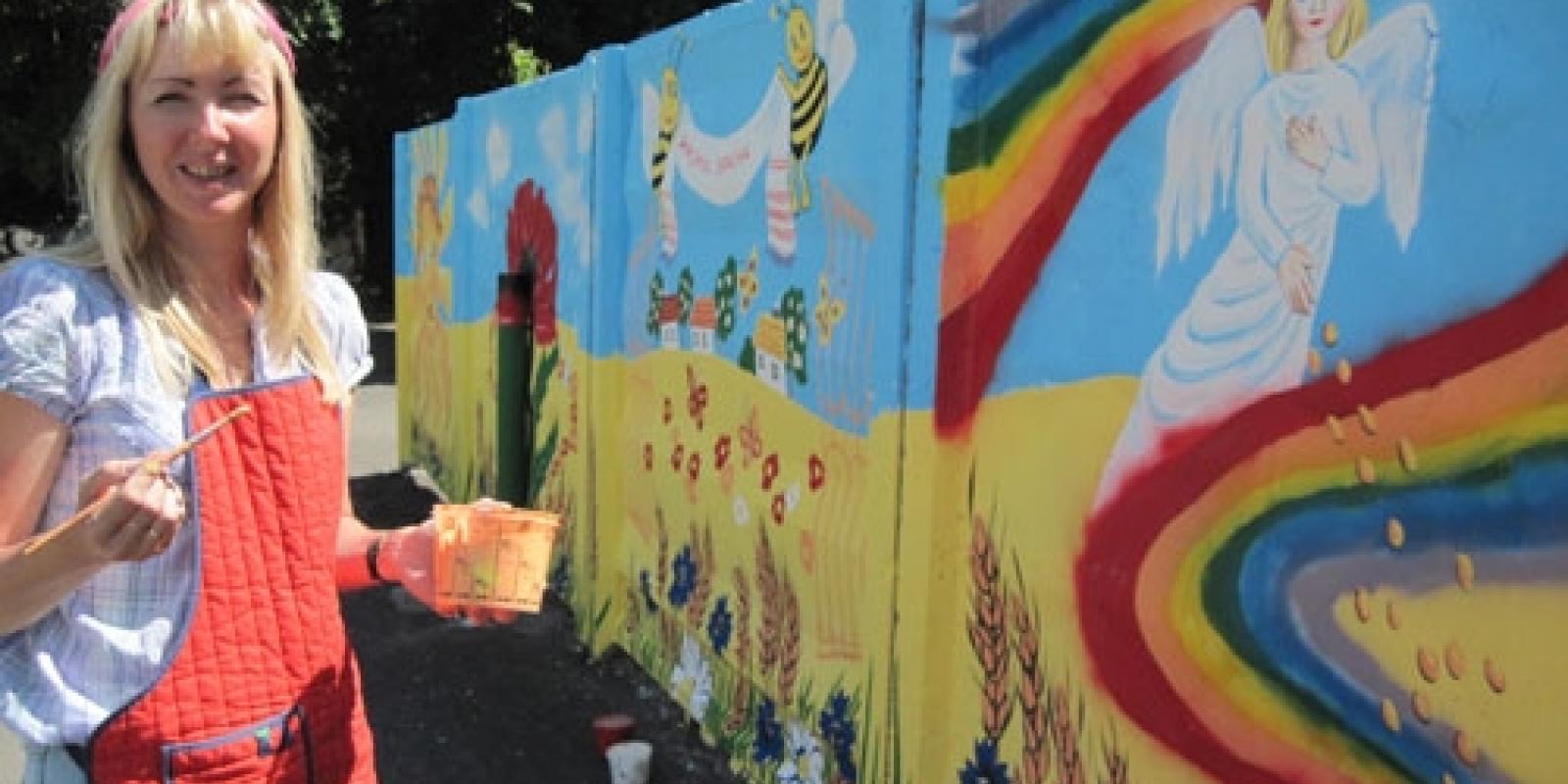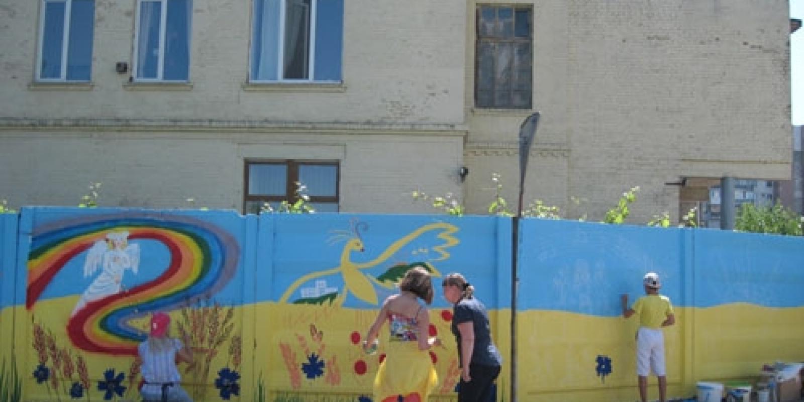 Замість сірого бетонного паркану – яскраве національно-патріотичне полотно (Фото)