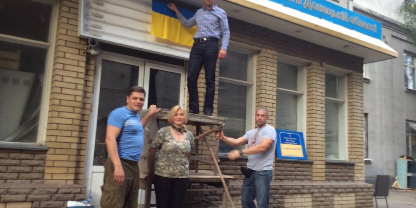 А ще ми повісили украінський прапор на вчорашньому лігвищі сепаратистів, на приміщенні, де вони тримали в полоні і мучили людей… Нехай з українською символікою сюди повертається український дух. Тут мають побувати всі українські політики і картинки цього жаха мають побачити всі ті, хто марять сепаратизмом – як протияддя від зла.