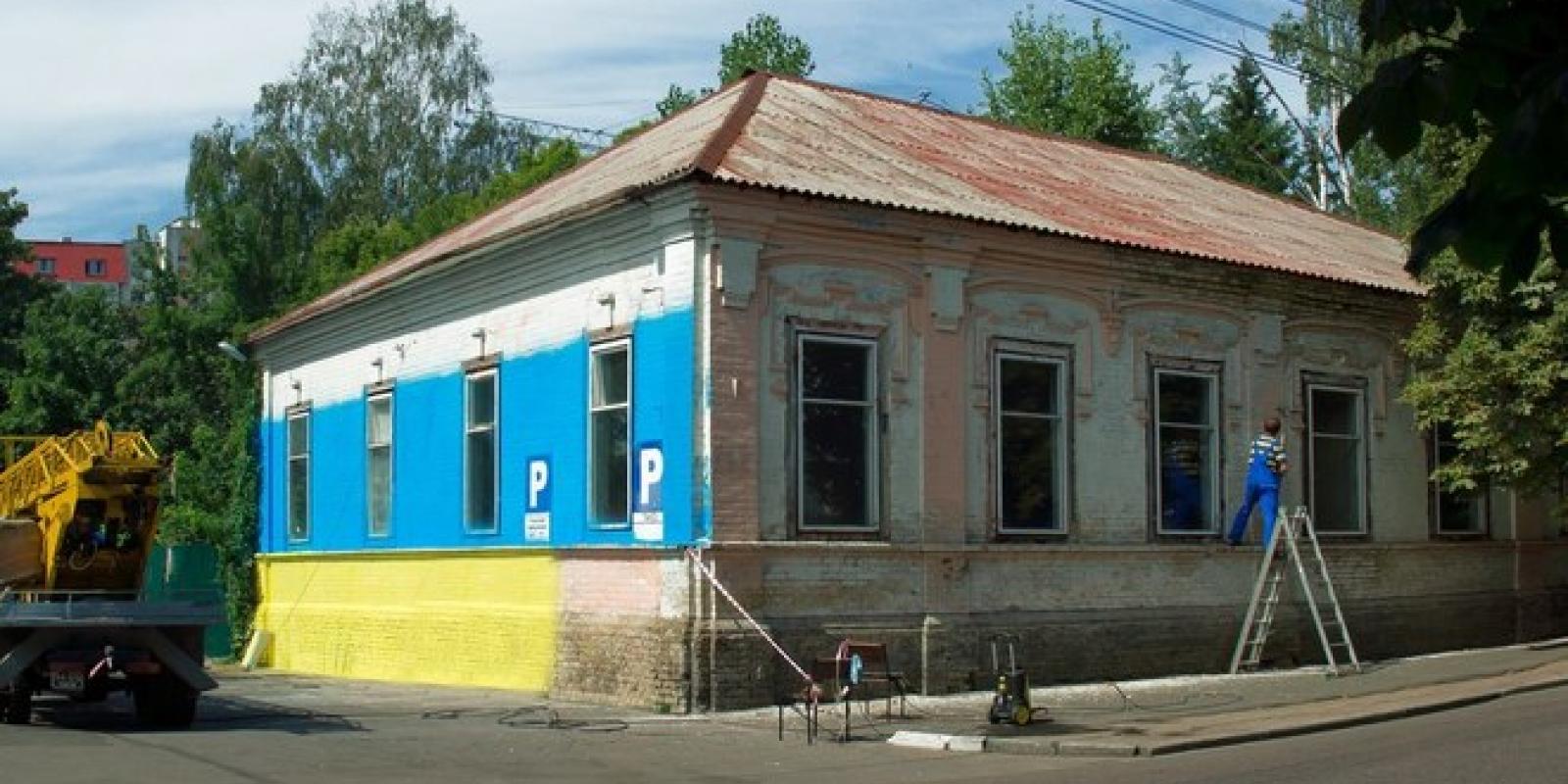 Будинок по бульвару Шевченка перефарбовують у кольори національного прапора України. Video Суспільство 2 просмотра чт, 17/07/2014 - 12:54