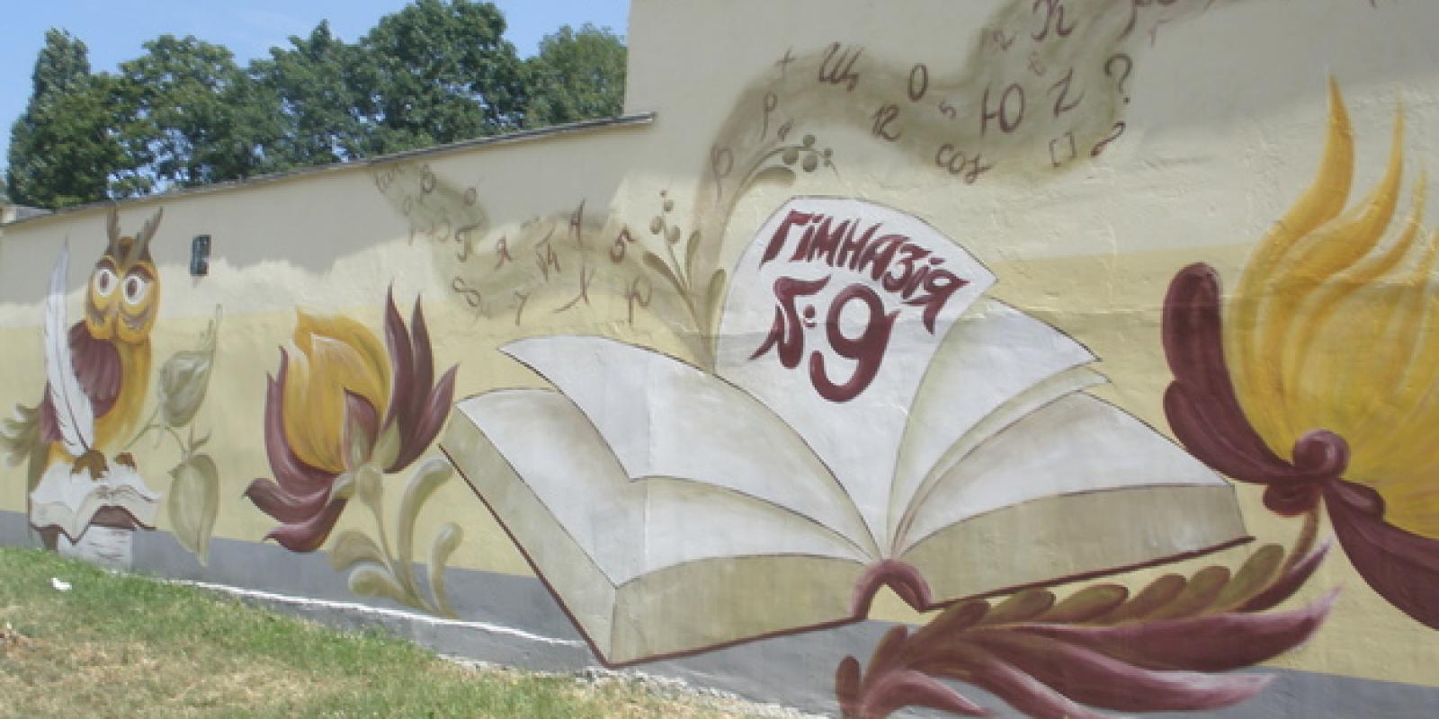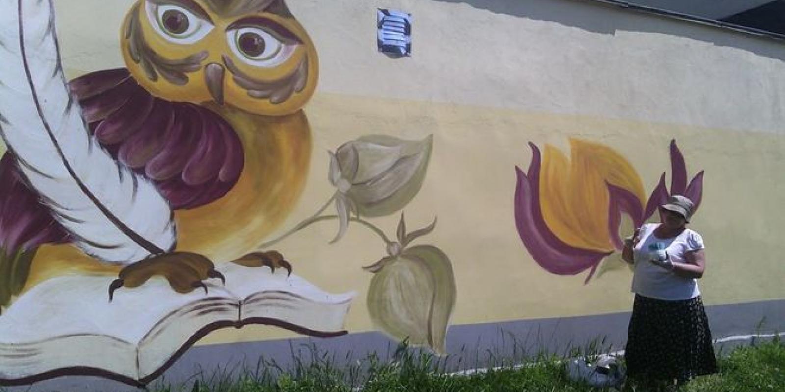 Занедбаний сарай між дитячою школою мистецтв та гімназією № 9 креативно розмалювали. Величезні квіти, казкові птахи, сова та книга тепер прикрашають будівлю з усіх боків. Півтора тижні викладачі школи мистецтв Тетяна Васильєва та Вікторія Кошелєва реалізовували ескізну ідею фарбами на стіні розміром 110 метрів квадратних.