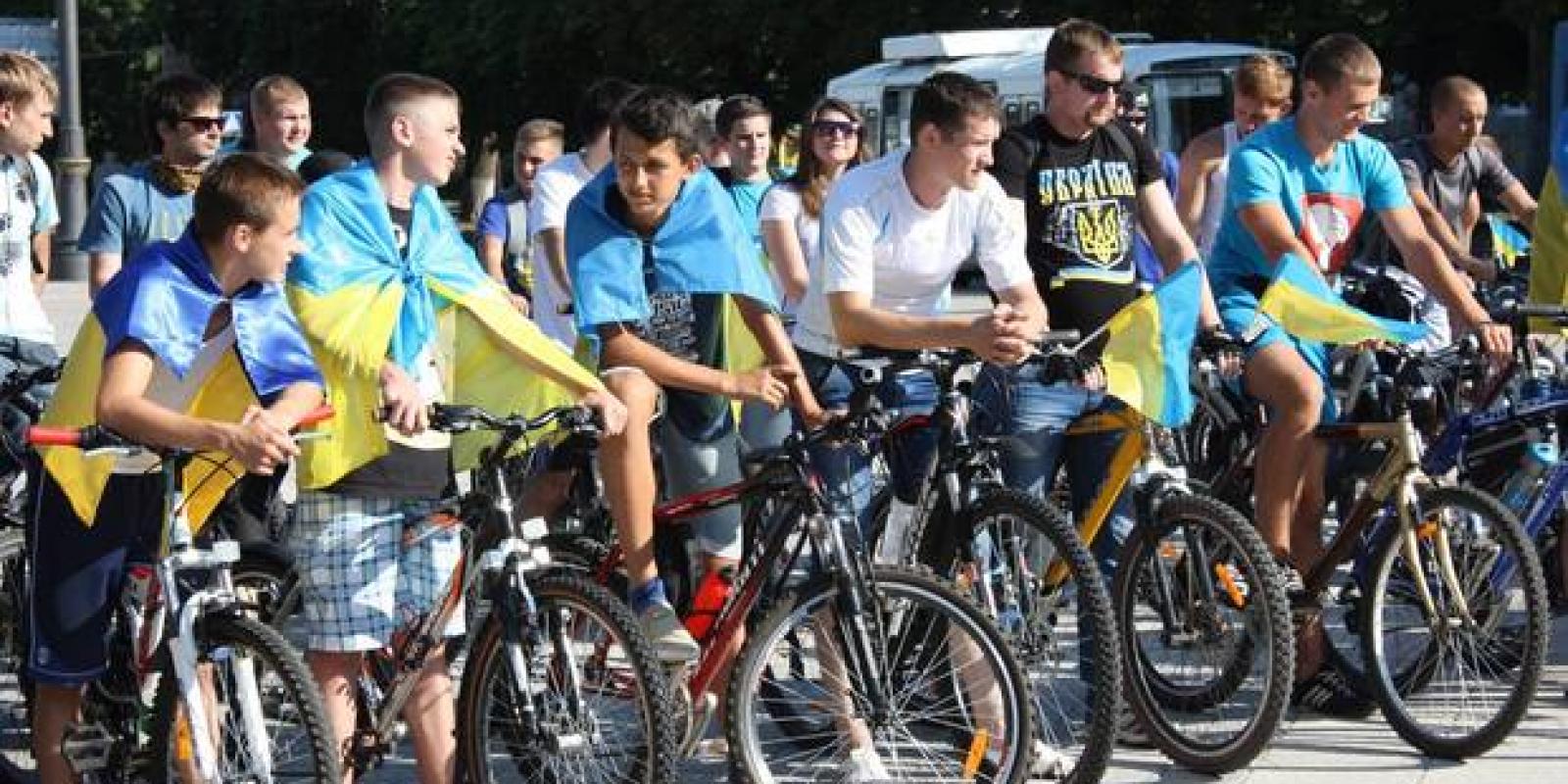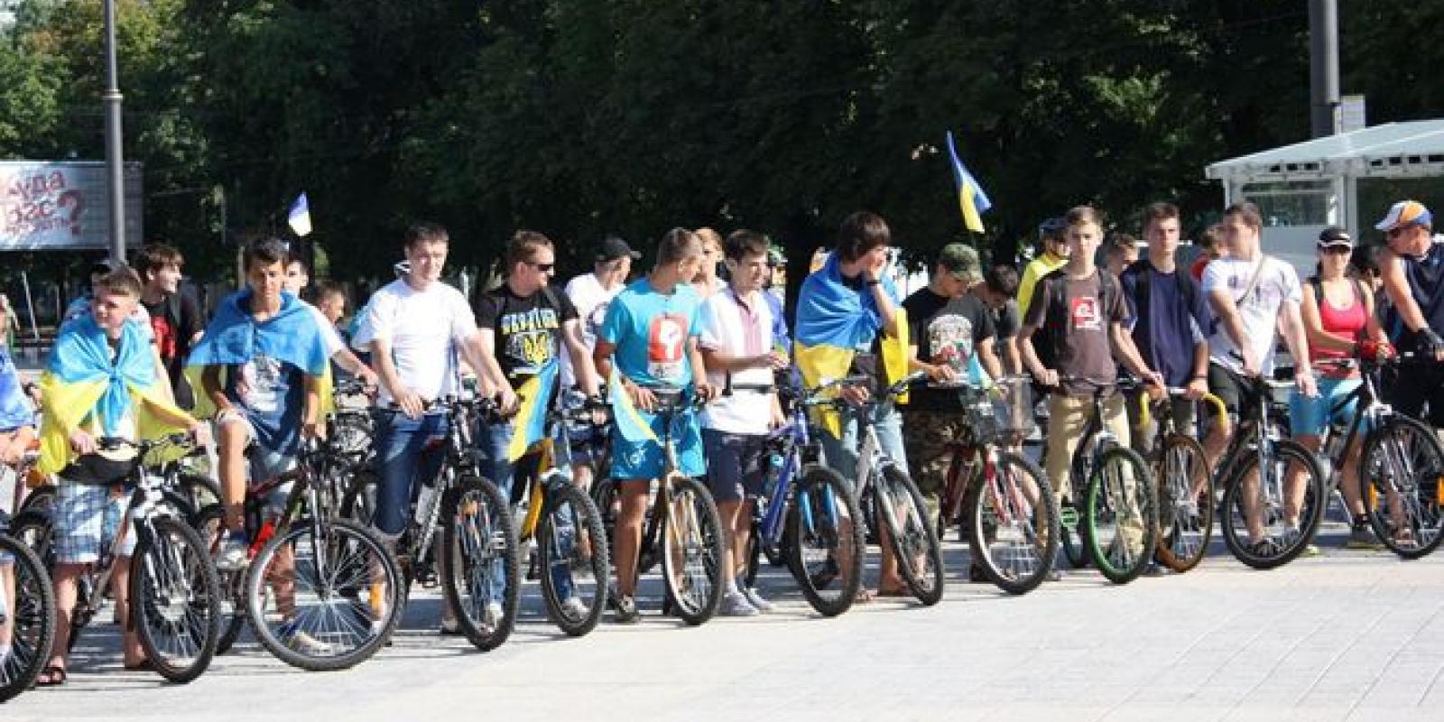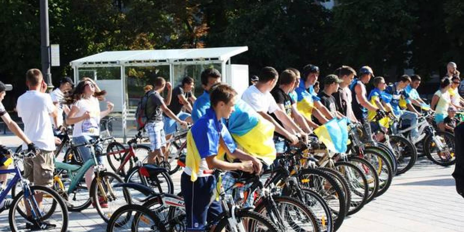Перехожі та водії автомобілів підтримували велосипедистів з національною символікою вигуками "Слава Україні!". Суспільство пн, 21/07/2014 - 13:07