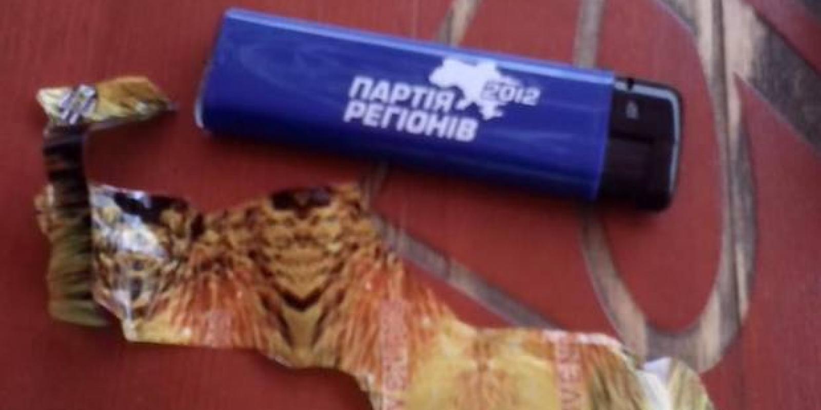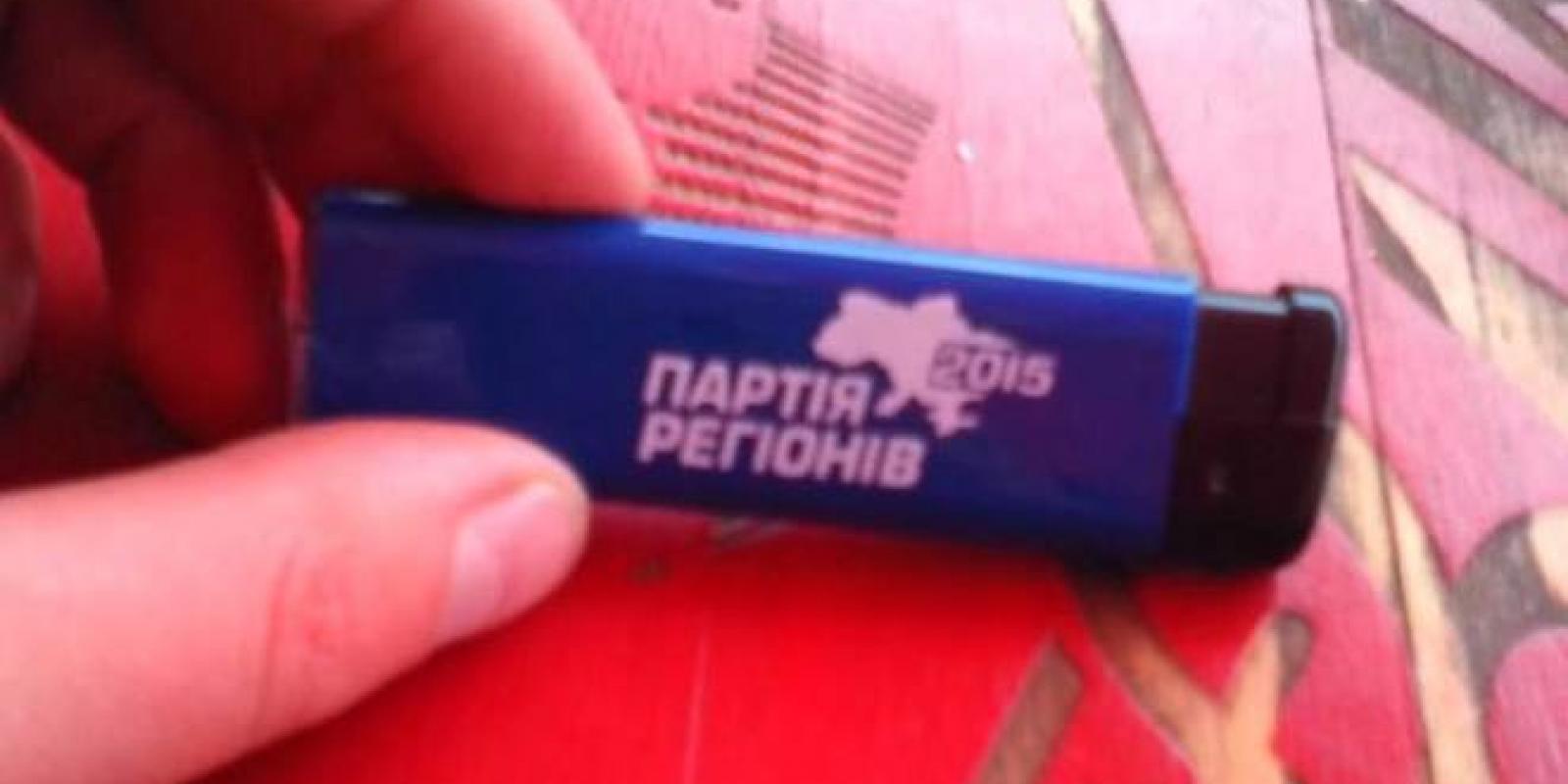 У Черкасах продають запальнички, на яких плівкою заклеєна реклама Партії регіонів