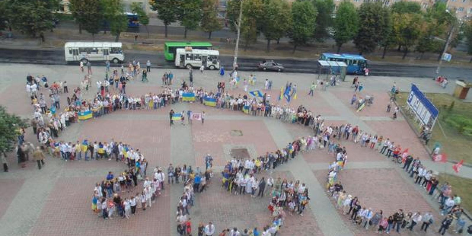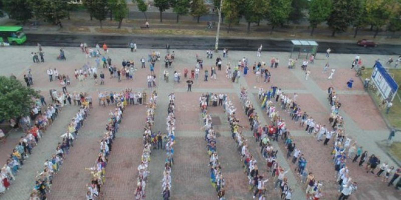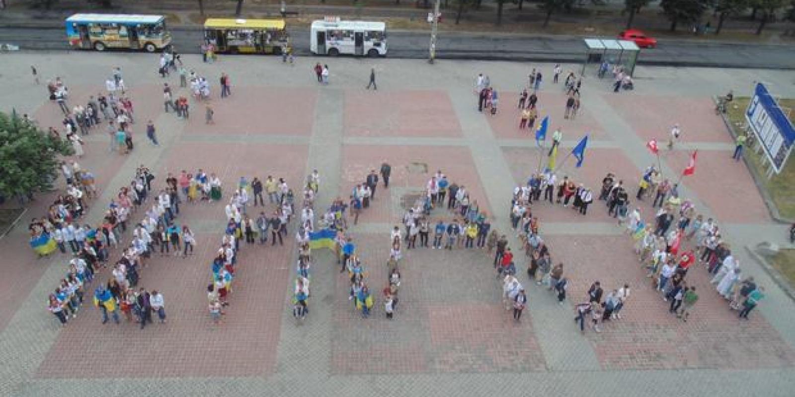 Уже на самій площі Шевченка учасники акції вишиковувалися у різні написи та фігури. Зокрема, своїми тілами вони вибудували слова "ПТН – ПНХ", "Черкаси", а також карту України, де окрім Криму була ще й Кубань.