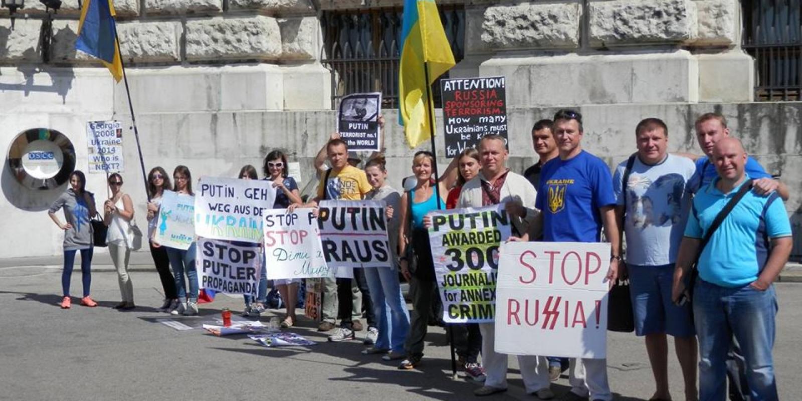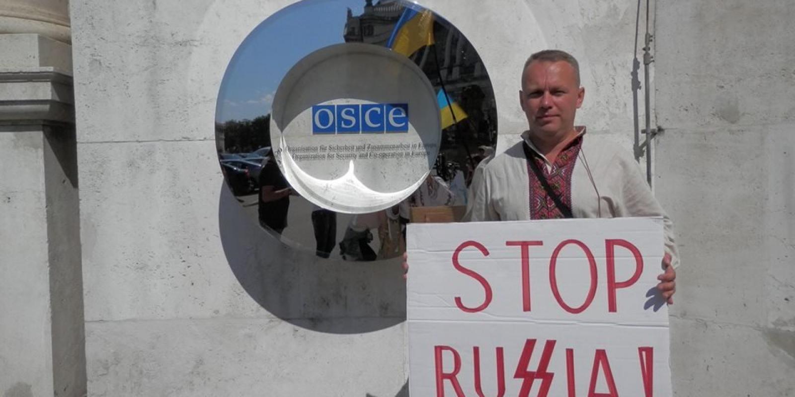 Представники черкаського Автомайдану пікетували штаб-квартиру ОБСЄ під час проведення екстренного засідання з проханням зупинити Росію.