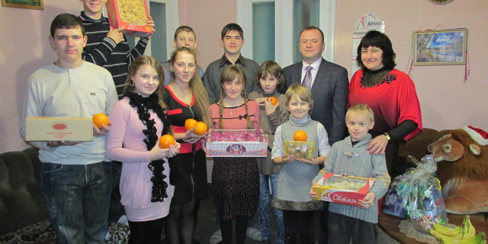 Батьки Олег Іванович та Валентина Іванівна нині виховують десятеро дітей віком від 8 до 16 років. Із неабиякими радощами та гостинністю зустріли діти візитерів. У свою ж чергу Павло Васильович привітав родину теплими словами та вручив їм пакунки із солодощами та фруктами, побажавши батькам і дітям любові, взаємоповаги, віри у краще майбутнє та безхмарного неба над їхніми головами.