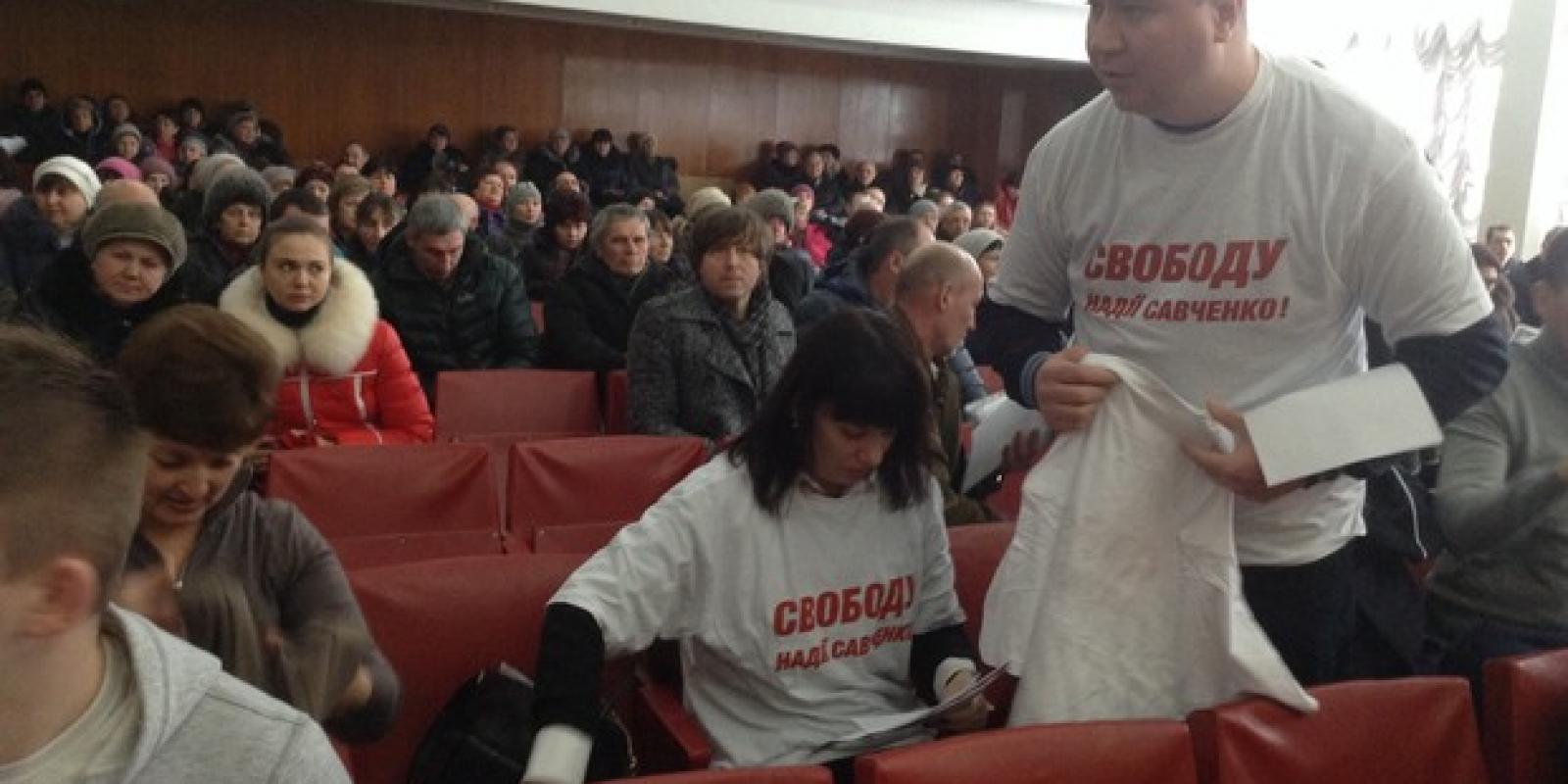 На початку сесії близько десяти депутатів вдягнули футболки з написом "Свободу Надії Савченко".