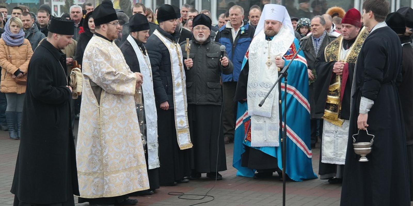 На Соборній площі, біля пам’ятного знаку Героям Небесної Сотні духовенство міста провело молебень за всіма загиблими та помолились за мир в Україні.