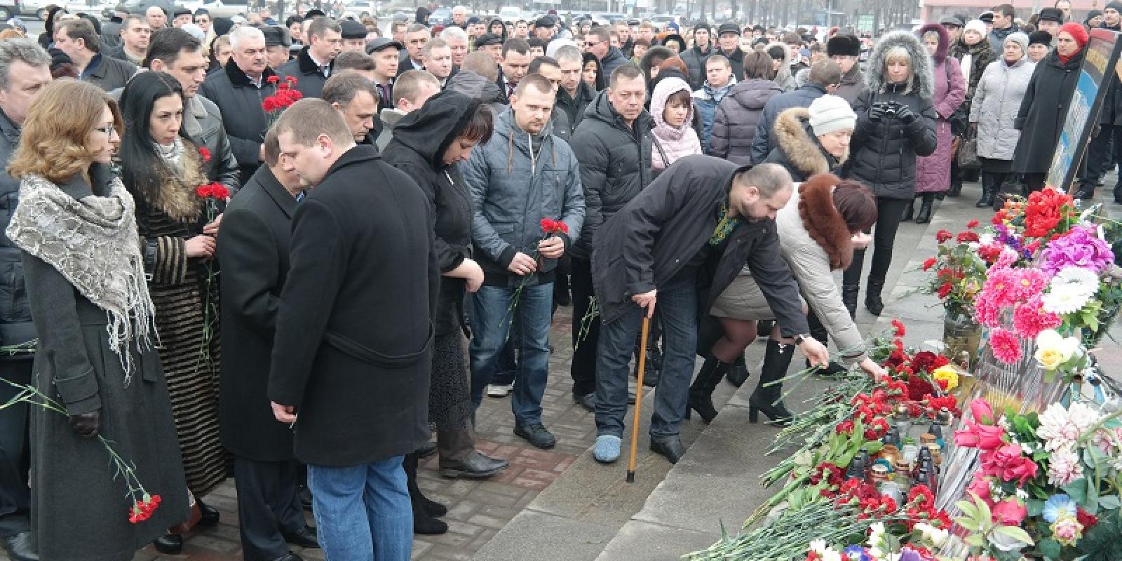 Вклонитись Героям Небесної Сотні сьогодні на Соборну площу зійшлисьчеркасці та гості нашого міста, які несли живі квіти та лампадки із запаленими свічками.