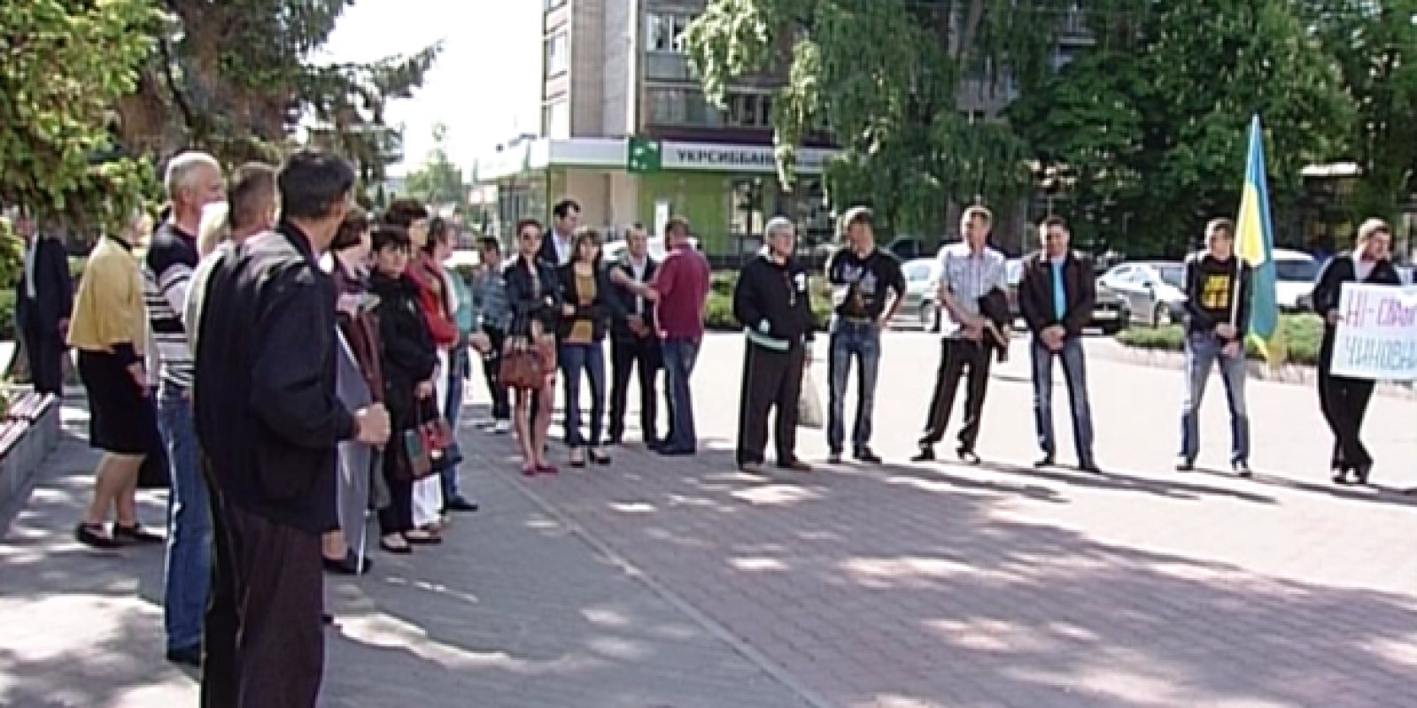 Працівники тримали у руках плакати "Захистимо чесних перевізників", "Рятуйте наші робочі місця".
