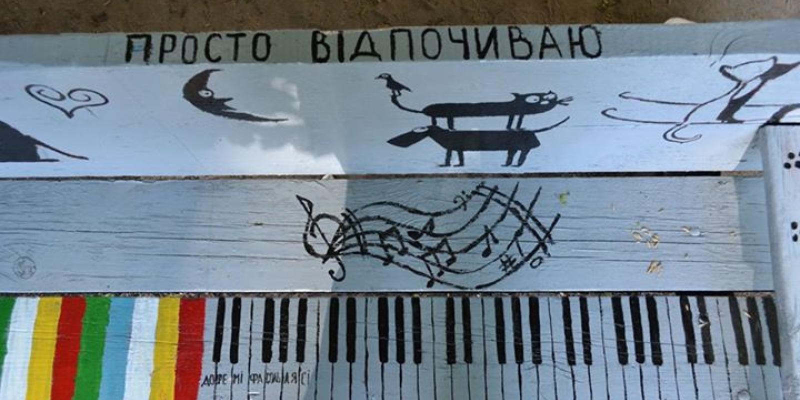 "Концепція: лавка двузонна. Одна частина призначена для тих хто має бажання познайомитися, про що інформує амурне зображення та веселий орнамент. Друга ж половина призначена для людей хто відпочиває. Сидячи на цій половині людина дає зрозуміти -"Прошу не турбувати, я в стані спокою". Позаду лавки, вмонтував декілька гачків для сумок , якими традиційно заповнені руки турботливих матусь , що, маю надію, присядуть на нашу лаву після напруженого дня. Лавка не призначена для сидіння на спинці з ногами на сидінні", - розповів Гриценко у Facebook.