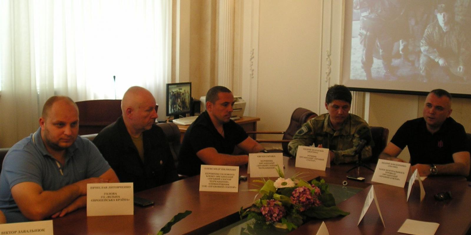 - Днями до парламенту лідером «Правого сектору» Дмитром Ярошем внесено проект закону «Про Добровольчий український корпус», який має об’єднати усі добровольчі сили України для боротьби за її незалежність, - зазначив член центрального проводу організації «Правий Сектор» Андрій Бондаренко, що разом із речником «Правого сектора» Андрієм Шараскіним спеціально приїхав до Черкас взяти участь у прес-конференції. - Досвід новаційного для України об’єднання взято із країн Прибалтики та Швейцарії, де фактично армією є всі чоловіки країни. Це однозначно буде позапартійна структура. Нам прикро, що останнім часом у нашій країні дуже багато робиться для дискредитації добровольчого руху. П’ята колона людей, що сповідують антиукраїнські настрої, роблять все можливе, аби внести розбрат у наш рух, створити у людей хибну про нас думку та збити на манівці українське суспільство. Особливо ситуація починає накручуватись перед місцевими виборами, у спробах «провести» у владу «своїх» людей. Тому сьогодні ми закликаємо вас внести свої пропозиції до законопроекту, що допоможе нам об’єднати зусилля для її кращого захисту.