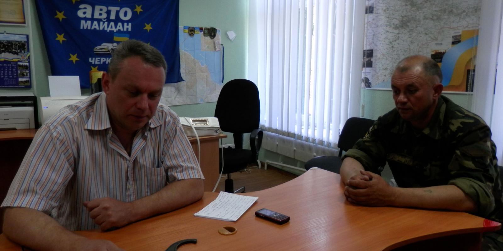 Від початку створення нашої бригади ми отримували допомогу лише ту, що зібрав для нас «Автомайдан-Черкаси» - інших волонтерів у нас просто немає. Є люди, що приїздять навчати лікуванню поранень, а матеріальну підтримку – від початку ми потребували її дуже багато, бо не мали практично нічого – надавав лише черкаський «Автомайдан». Ось ця форма, що на мені – подарована волонтерами. Бо та форма, яку нам видали, синтетична. Вона не «дихає» - у спеку у ній просто як у бані. А при займанні не перешкоджає, а сприяє горінню – наші танкісти, що потрапляли у ній під обстріли, отримували дуже складні опіки, що тяжко лікуються. Я дивився на ту форму, яку носять наші генерали – вона зовсім інакша, якісна.