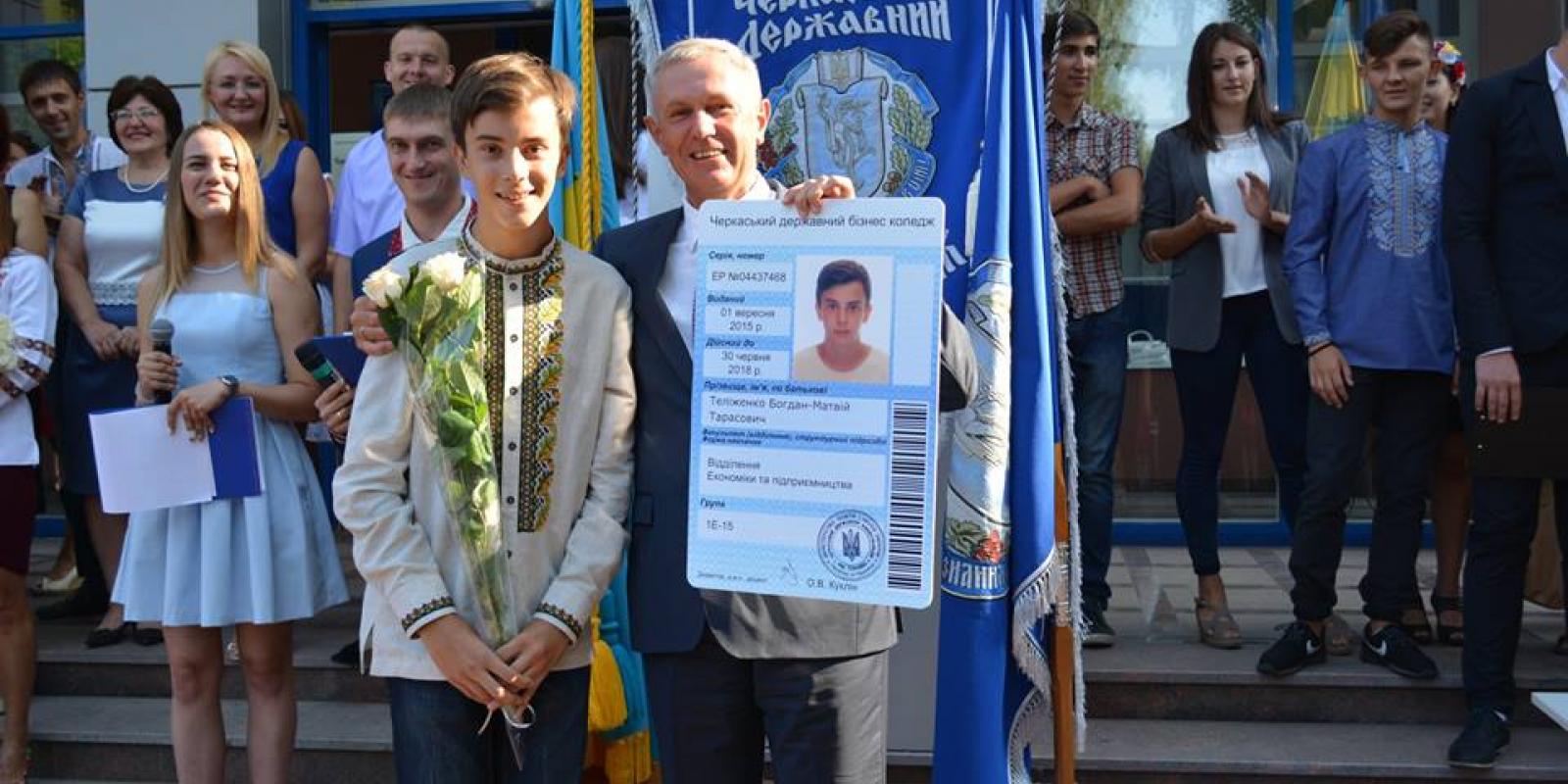 Нащадок відомого на всю Україну роду Теліженків - Богдан-Матвій - став одним із 1200 студентів Черкаського державного бізнес-коледжу. Як повідомив директор вузу Олег Куклін, як наймолодшому студентові закладу - майбутньому економісту не виповнилося ще й 15 років – Богдану-Матвію було вручено спеціальний студентський квиток.