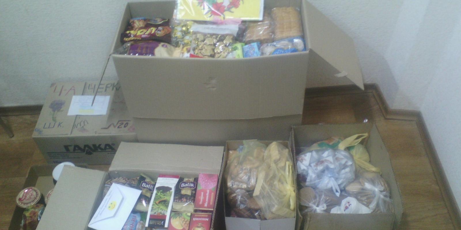 - Такі акції у нас проходять постійно, - констатує директор спеціалізованої школи № 20 Людмила Кіта, - Цього разу наші учні (із 1 по 12 клас) та вчителі школи зібрали для наших воїнів у АТО до 50 кілограмів печива, вафель, чаю, цукерок, халви. Крім того, ми передали на фронт багато сувенірів та оберегів, зроблених дітьми, а також дитячих малюнків.