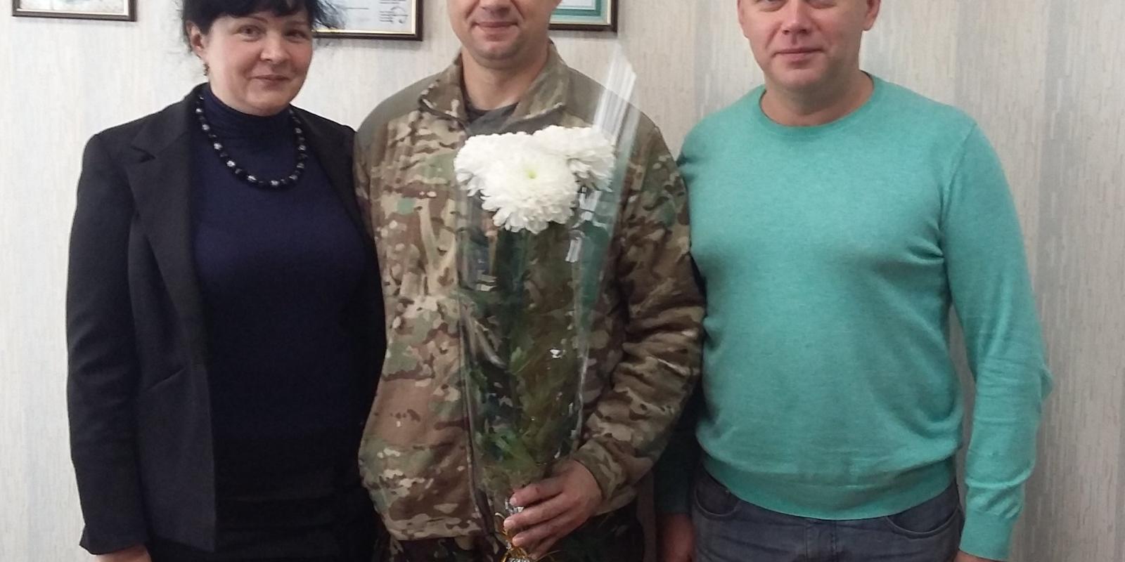 Фото 1 - директор спеціалізованої школи № 20 Людмила Кіта, командир дивізіону 43 артилерійської бригади Анатолій Стуженко, керівник ГО «Автомайдан-Черкаси» Сергій Яковенко.