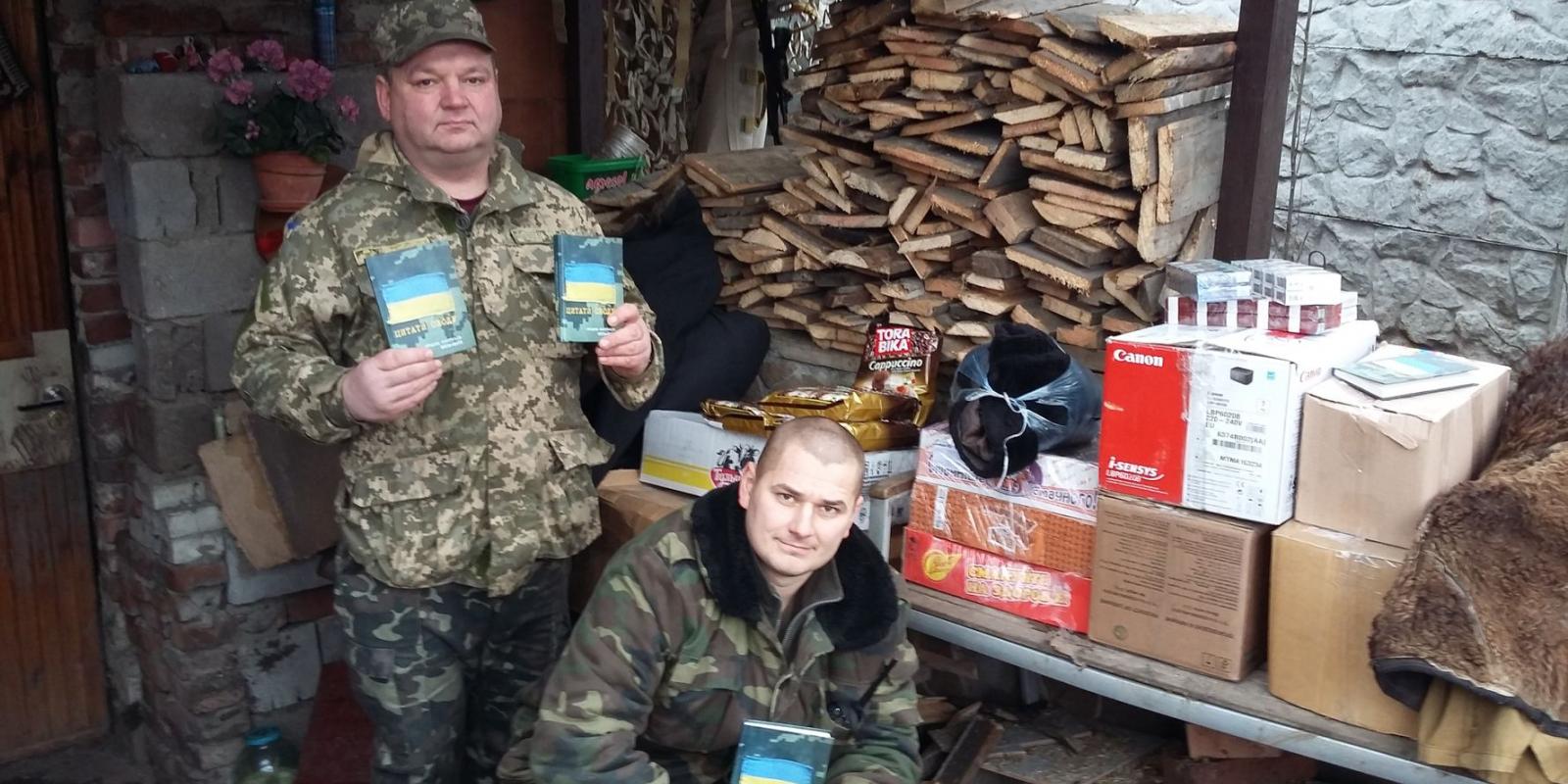До двох, «забитих під зав’язку» автомобілів продуктів та речей, громадські активісти поклали і кілька десятків примірників «Цитат Сходу» - книги черкаського журналіста Сергія Могилка про сучасну війну - яка миттю розійшлася серед військових