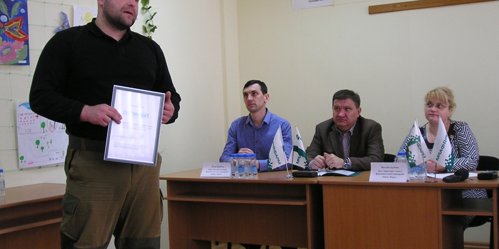Розповідаючи про благодійну допомогу військовим у зоні АТО, яку корпорація надала уже на 25 мільйонів гривень, Ігор Найда вручив раднику голови Черкаської ОДА Сергію Лугері сертифікат на 50 тисяч гривень - на придбання авто для батальйону «Айдар».