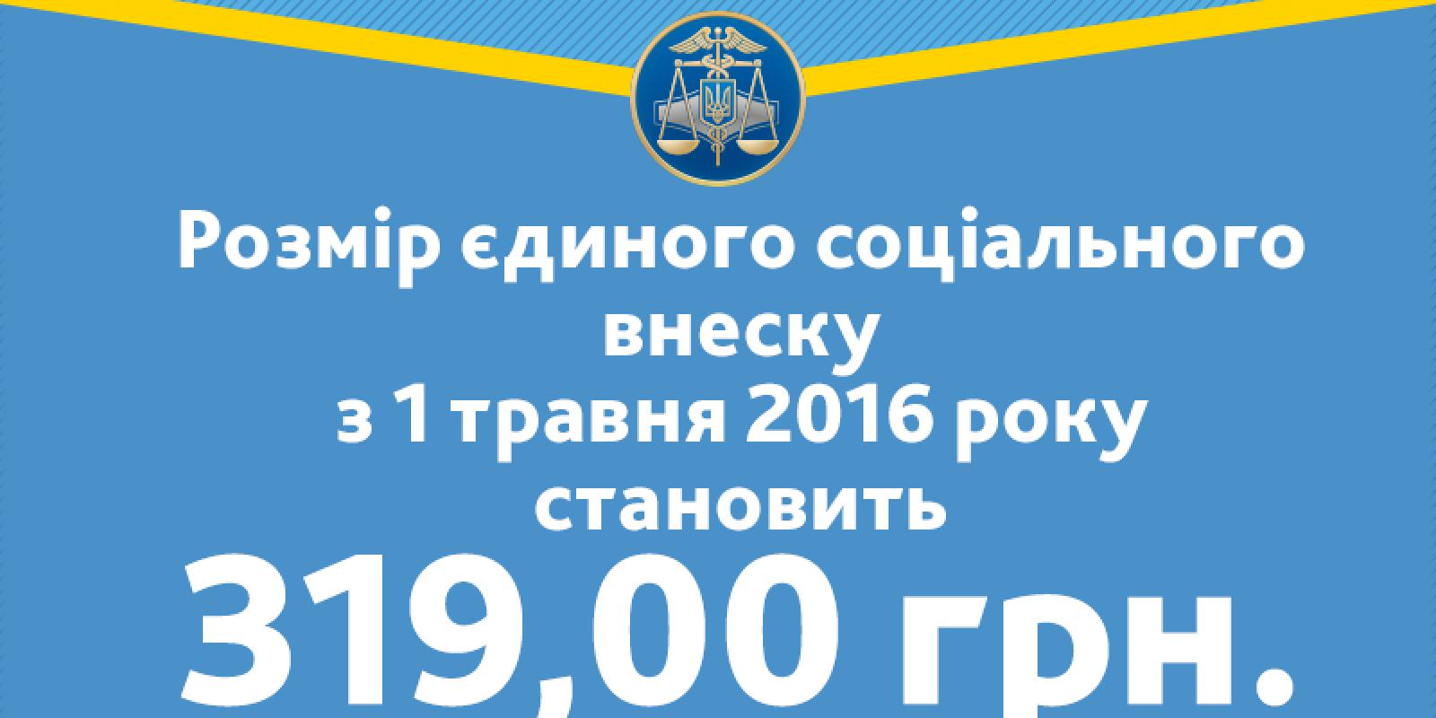 Таким чином, з 1 травня 2016 р. щомісячний розмір мінімального страхового внеску становить 319,00 грн. (1450 грн.х22%).