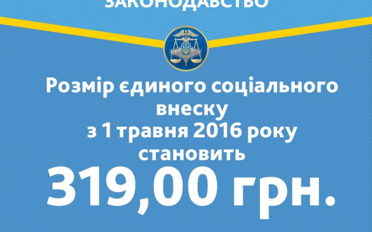 Щомісячний мінімальний розмір єдиного внеску у травні - листопаді 2016 року становить 319 грн. Мінімальний розмір ЄСВ 319 грн. на місяць дпі у м. черкасах 1 просмотр Подробнее